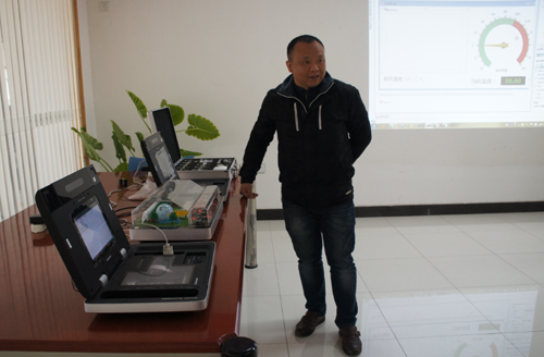 物聯網負責人李杰正在給學校領導講解智能農業實驗室